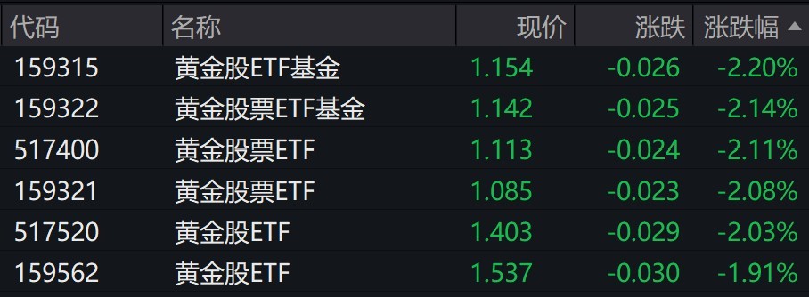 股票配资10万一年利息多少 金价盘中走低,黄金股相关ETF午后跌超2%