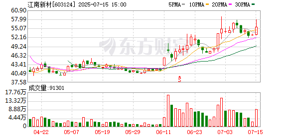 江南新材(603124)今日上涨4.66%,全天换手率31.88%,成交额5.14亿元,振幅10.04%。龙虎榜数据显示,机构净卖出472.56万元,营业部席位合计净买入124.15万元。