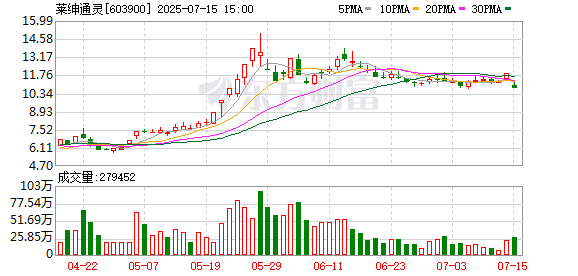 莱绅通灵(603900)今日跌停,全天换手率8.18%,成交额3.00亿元,振幅4.58%。龙虎榜数据显示,机构净卖出7629.37万元,营业部席位合计净买入309.76万元。